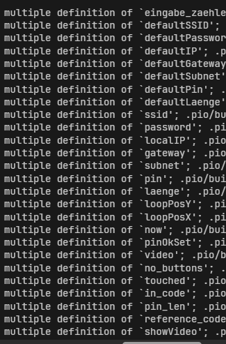 /Users/mk/.platformio/packages/toolchain-xtensa-esp32s3/bin/../lib/gcc/xtensa-esp32s3-elf/8.4.0/../../../../xtensa-esp32s3-elf/bin/ld: .pio/build/esp32-s3-devkitc-1-myboard/src/sd_card.cpp.o:/Users/mk/Documents/PlatformIO/Projects/ME-Display/include/config.h:42: multiple definition of `eingabe_zaehler'; .pio/build/esp32-s3-devkitc-1-myboard/src/main.cpp.o:/Users/mk/Documents/PlatformIO/Projects/ME-Display/include/config.h:42: first defined here