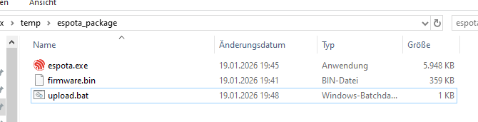 So and entire upload package could just be this, where you double click upload.bat and it uploads the firmware (and filesystem). That’s it.