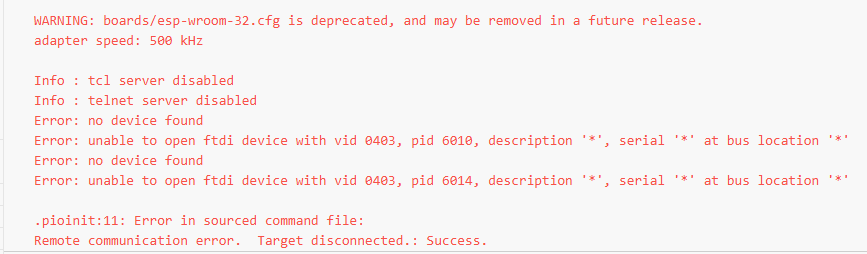 I am getting the following error trying to use an ESP-PROG with a n ESP32 project. I had this working fine for quite a while but it isn’t working now.