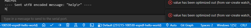 Also the “Type in a message to send to the serial prot” makes it seem like you’re using a different Serial Port extension, and not the “Monitor” project task which would launch pyserial / miniterm.