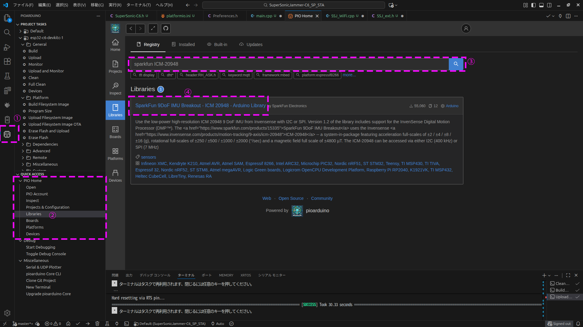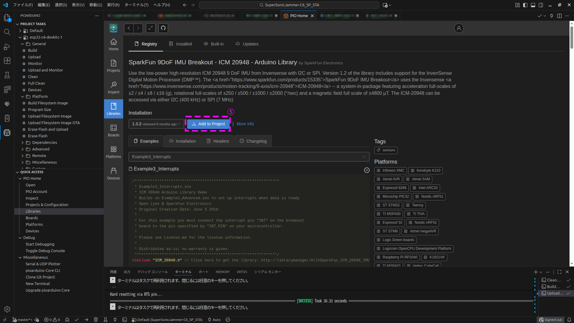 PLATFORM: Espressif 32 (55.3.35) > Sparkfun ESP32-C6 Thing Plus